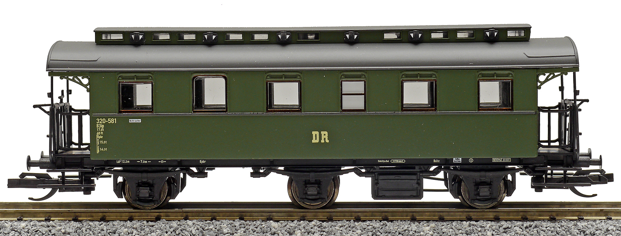 měřítko 1:120 - rozchod kolejí 12 mm vnitřní interiér vozu kinematika krátkého spřáhla (KKK) podle normy NEM 358 108 mm - celková délka modelu přes nárazníky 3 - celkový počet náprav nebo rozložení náprav