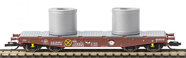 | plošinový vůz hnědý s nákladem dvou cívek |
