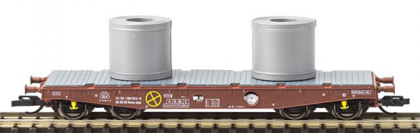 | plošinový vůz hnědý s nákladem dvou cívek |
