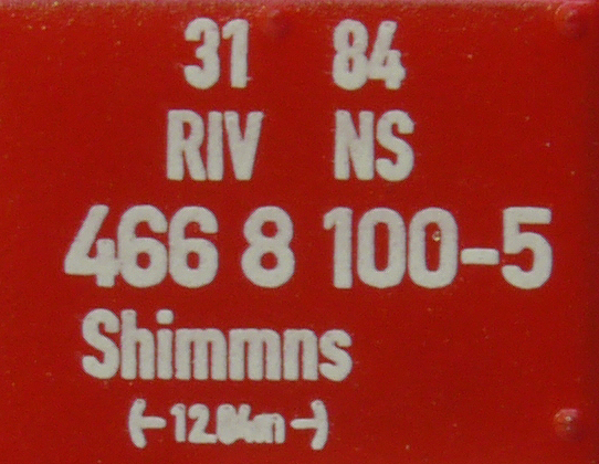 | • 31 84 466 8 100-5 | → | nákladní, s podvozky, pevný rozchod, ve vlastnictví železniční správy, RIV, PPV |
