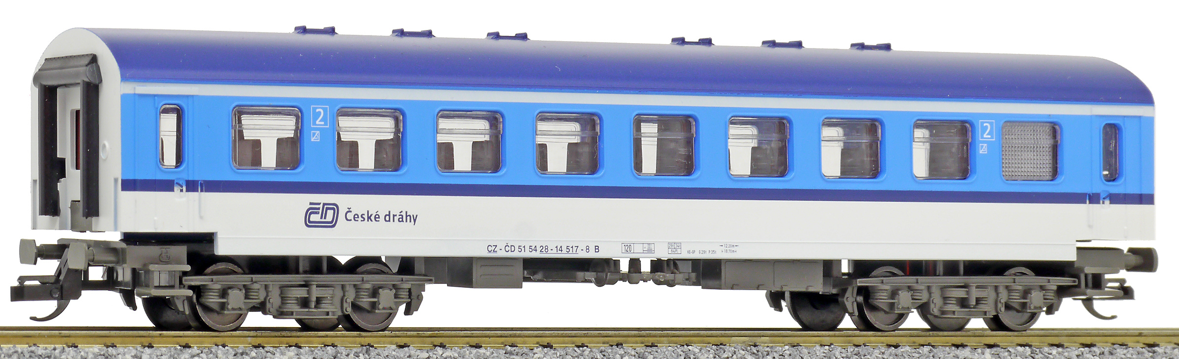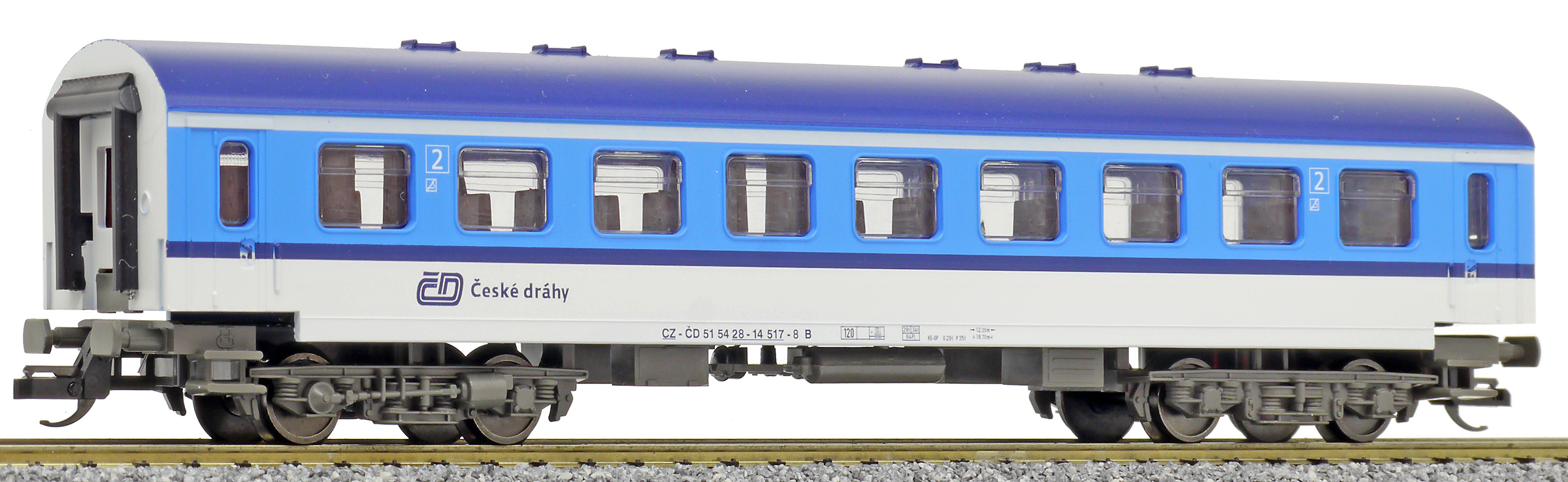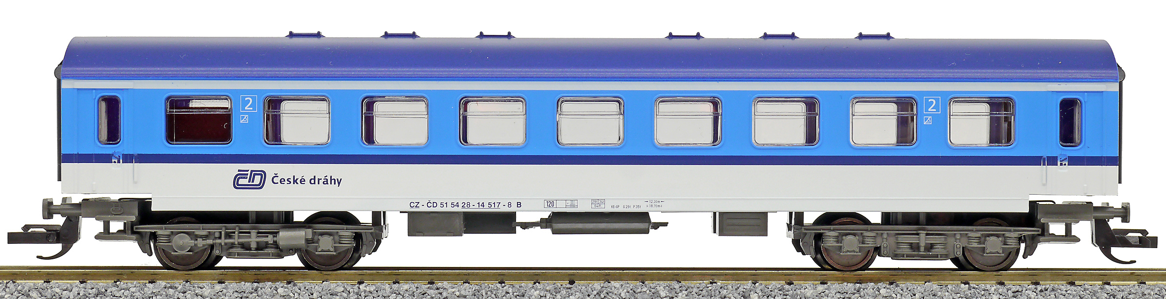 měřítko 1:120 - rozchod kolejí 12 mm vnitřní interiér vozu je možná instalace osvětlení interiéru nenormované uchycení spřáhla 160 mm - celková délka modelu přes nárazníky