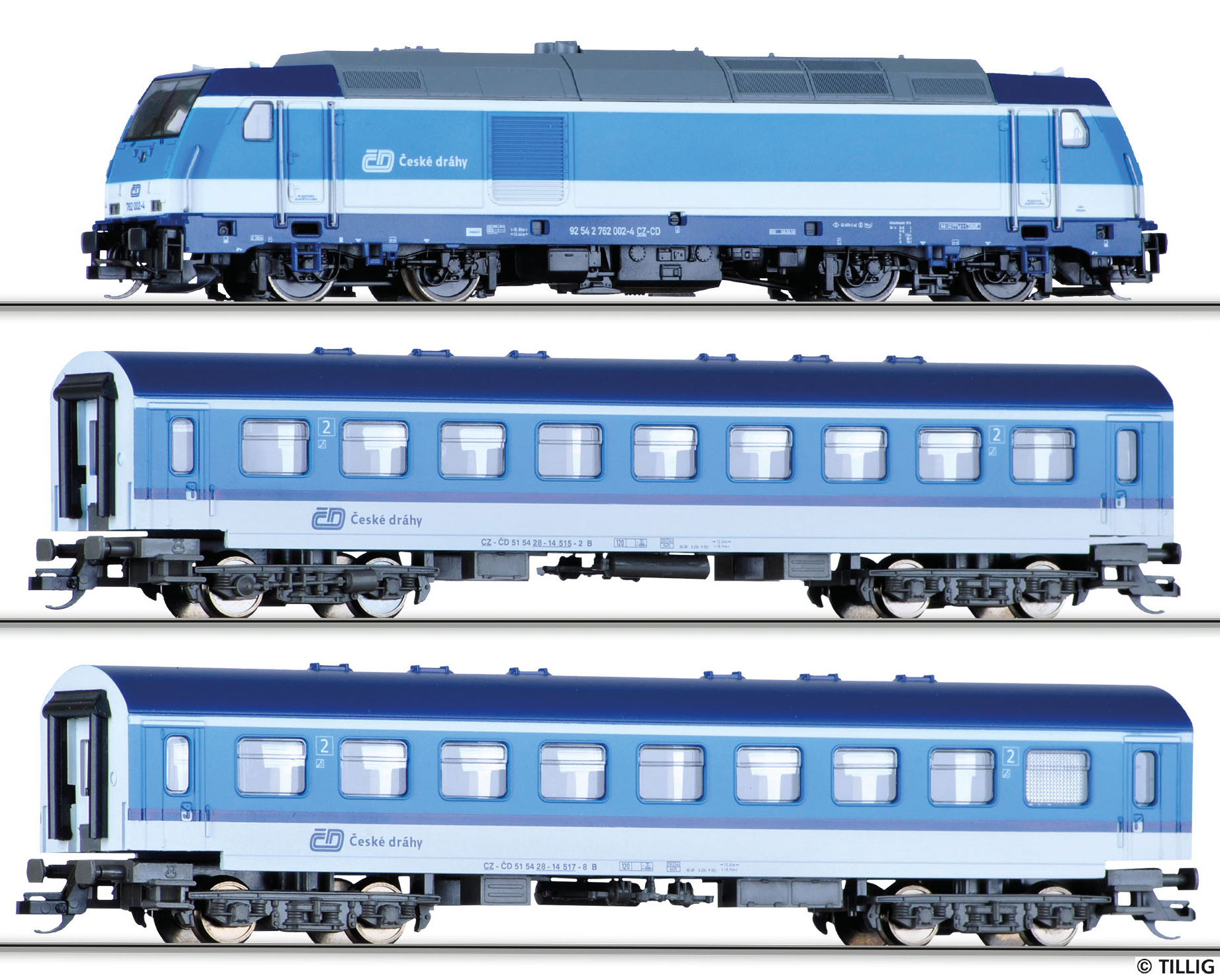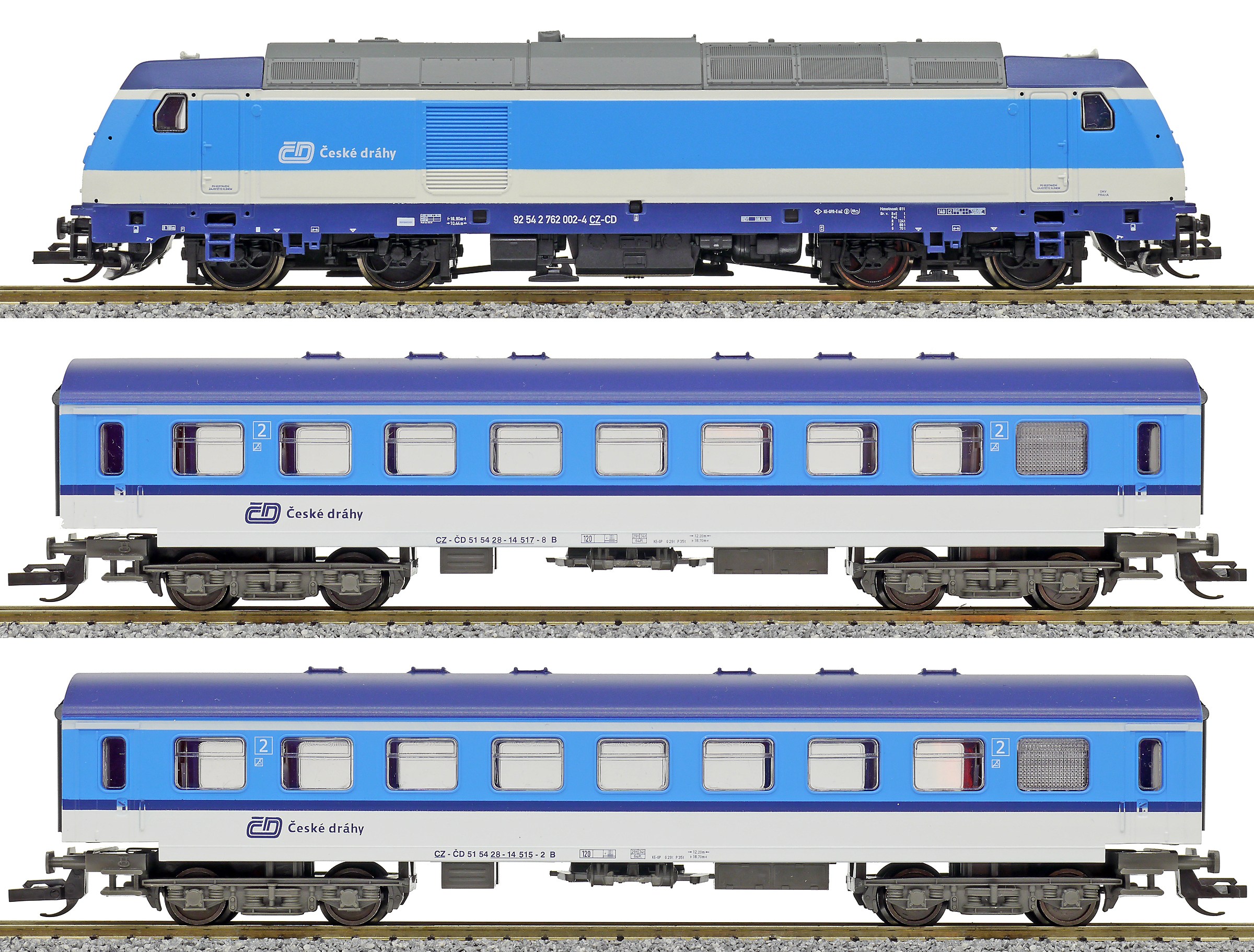 | set dieselové lokomotivy „TRAXX“ a dvou osobních vozů |
