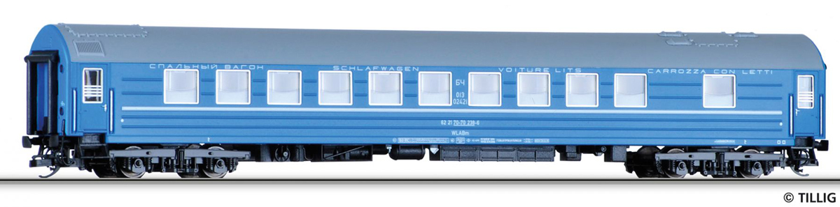 | lůžkový vůz modrý s šedou střechou |