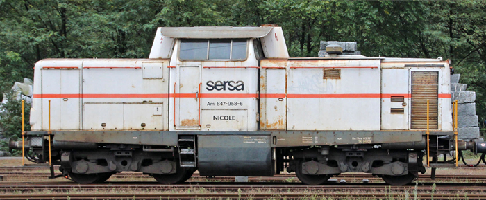 | dieselová lokomotiva bílá, černý rám a pojezd „GRETLI II“ |