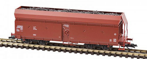 | samovýsypný vůz červenohnědý s nákladem uhlí |