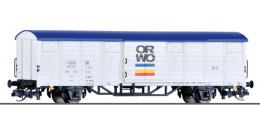 | krytý nákladní vůz bílý s modrou střechou „ORWO“ |