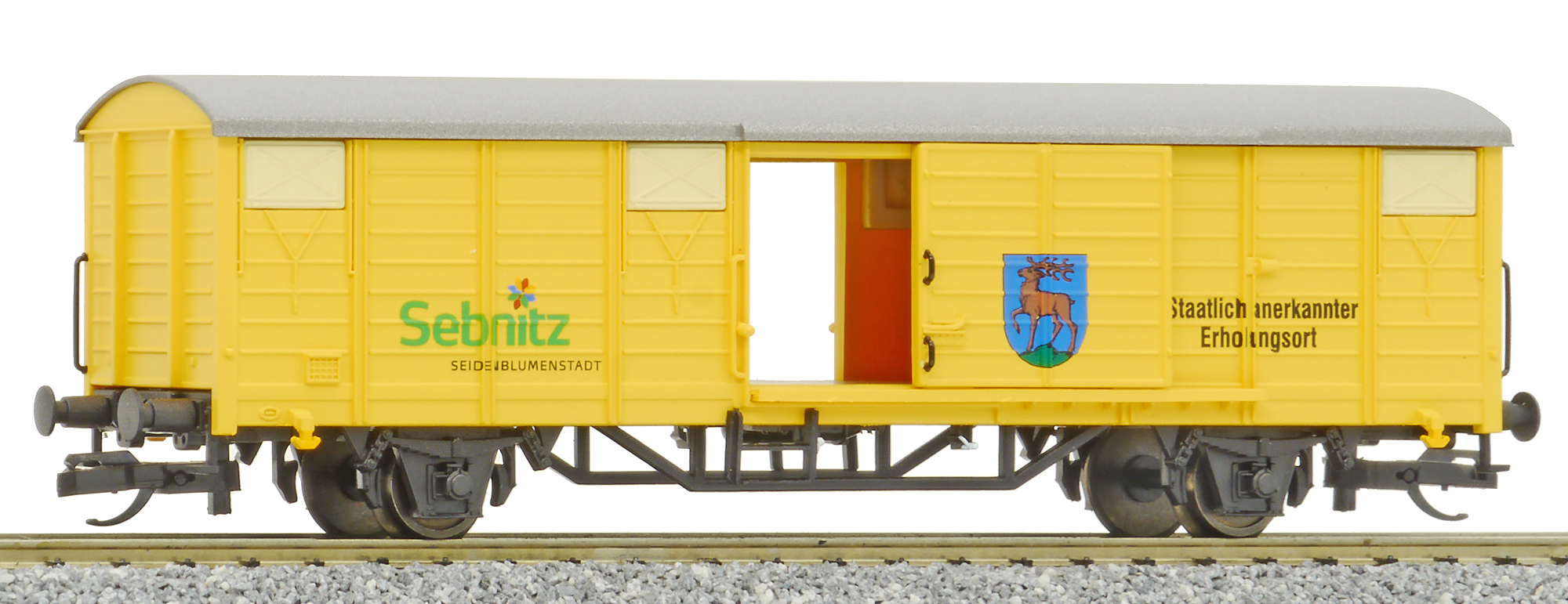 | krytý nákladní vůz oranžový s šedou střechou jako suvenýr „TILLIG/Sebnitz“ |