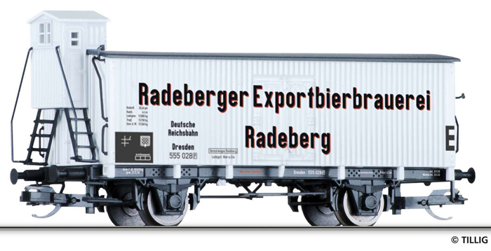 | chladicí vůz bílý s šedou střechou „Radeberger“ |