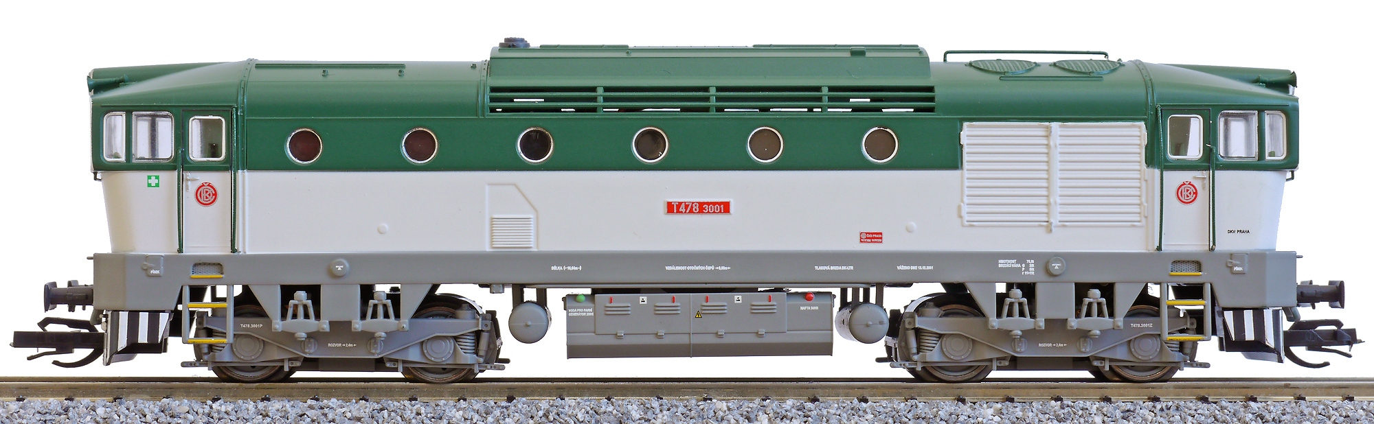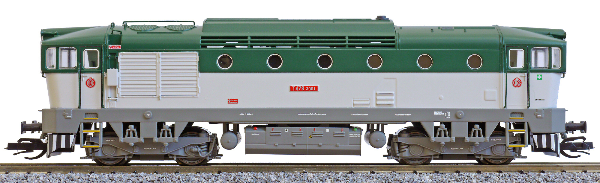 měřítko 1:120 - rozchod kolejí 12 mm osvětlení - 3 reflektory vpředu, 2 světla vzadu, přepínatelné podle směru jízdy 4 hnané nápravy 2 bandážované nápravy kinematika krátkého spřáhla (KKK) podle normy NEM 358 digitální rozhraní podle NEM 662 s konektorem Next18 setrvačník 138 mm - celková délka modelu přes nárazníky 4 - celkový počet náprav nebo rozložení náprav