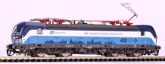 | elektrická lokomotiva „Vectron“ s potiskem „Prag-Berlin-Hamburg“ |