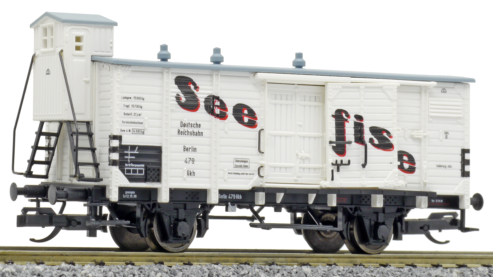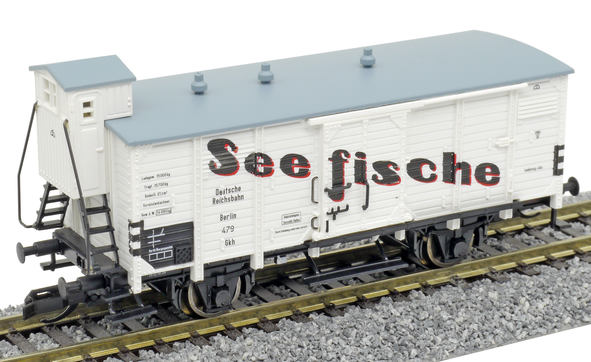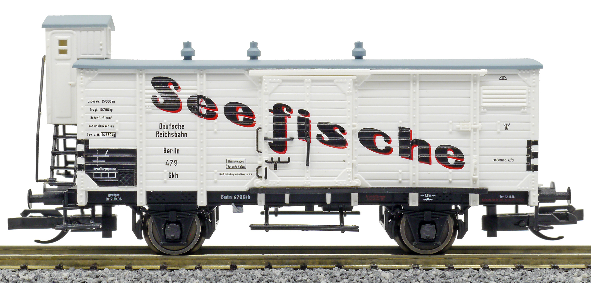 | krytý nákladní vůz tepelně izolovaný bílý s tmavě šedou střechou „Seefische“ |