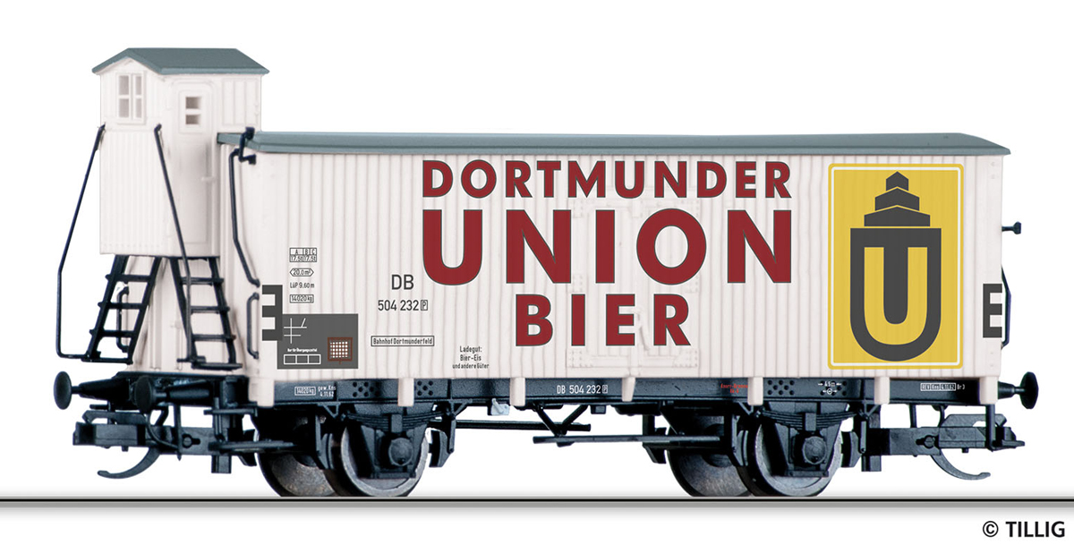 chladicí vůz bílý s šedou střechou „Dortmunder Union Bier“