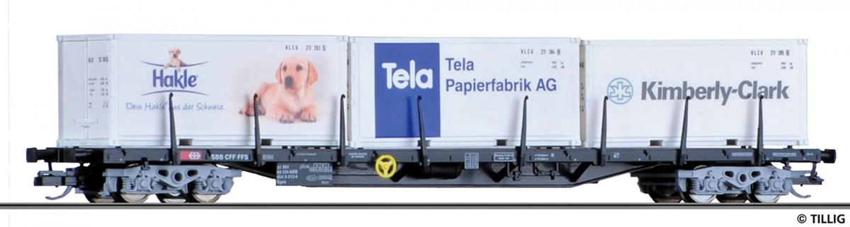 | nákladní plošinový vůz černý se třemi kontejnery 20' |