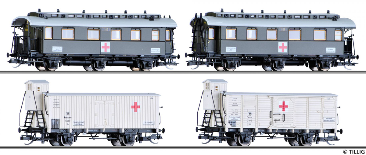 | set dvou osobních a dvou nákladních vozů „Vereins-Lazarettzug“ |