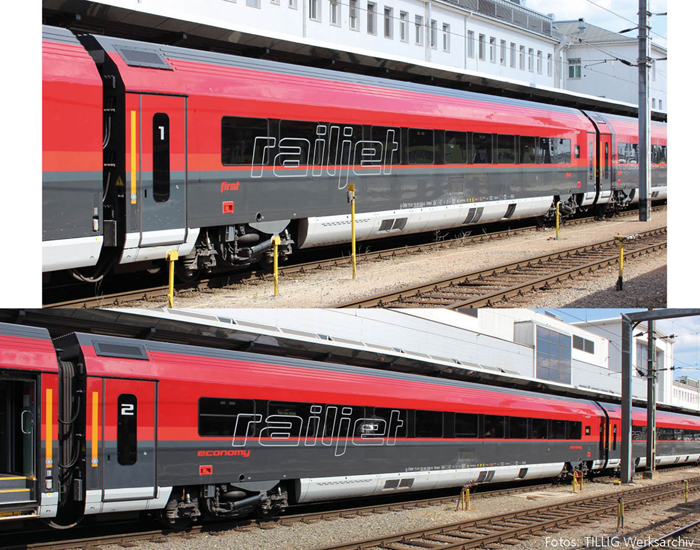 | set dvou rychlíkových vozů „Railjet“ 2. tř. |