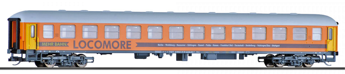 | rychlíkový vůz oranžový s šedou střechou „LOCOMORE“ 2. tř. |