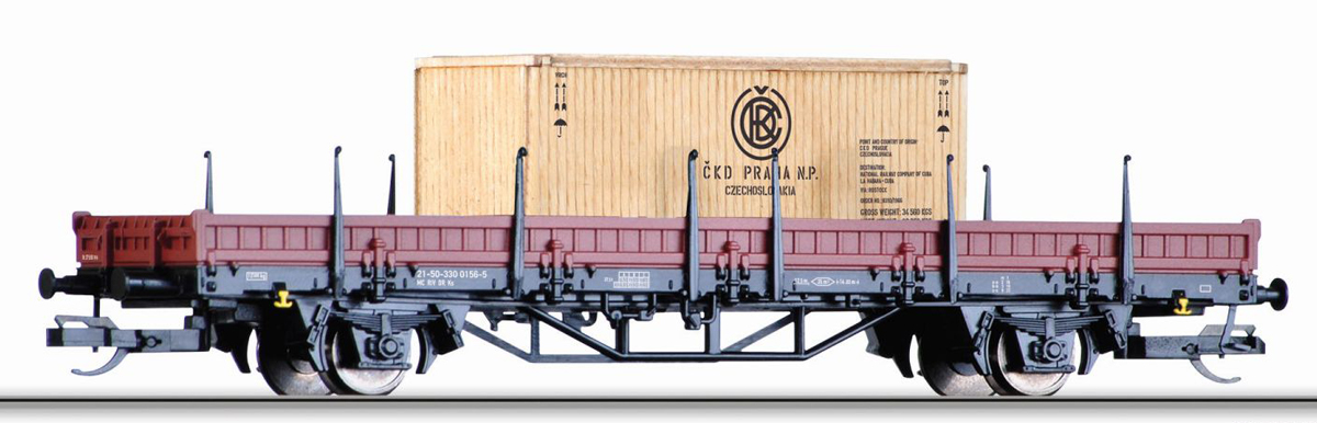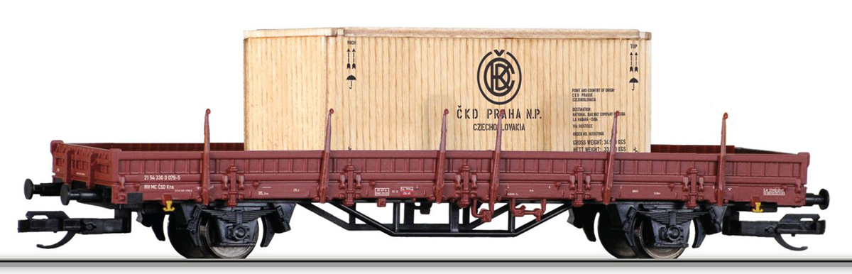 | nízkostěnný nákladní vůz s nákladem bedny „ČKD Praha“ |