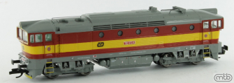 Popis   dieselová lokomotiva červená s výstražným pruhem, šedá střecha, rám a pojezd