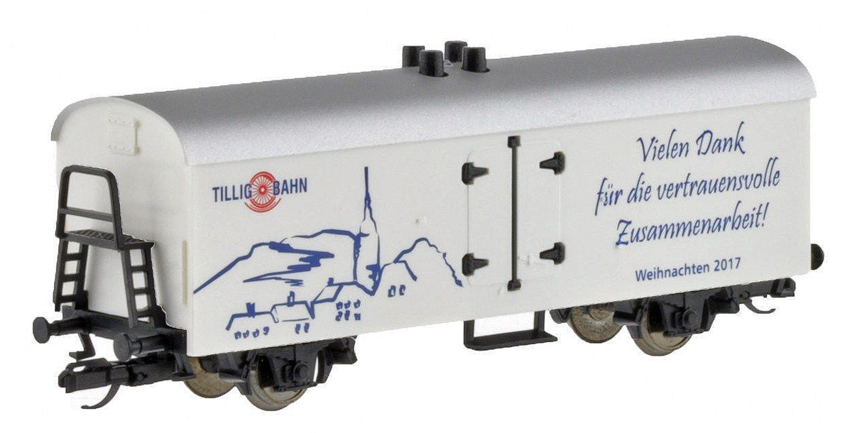 | chladící vůz bílý se stříbrnou střechou a s reklamním potiskem „Weihnachten 2017“ |