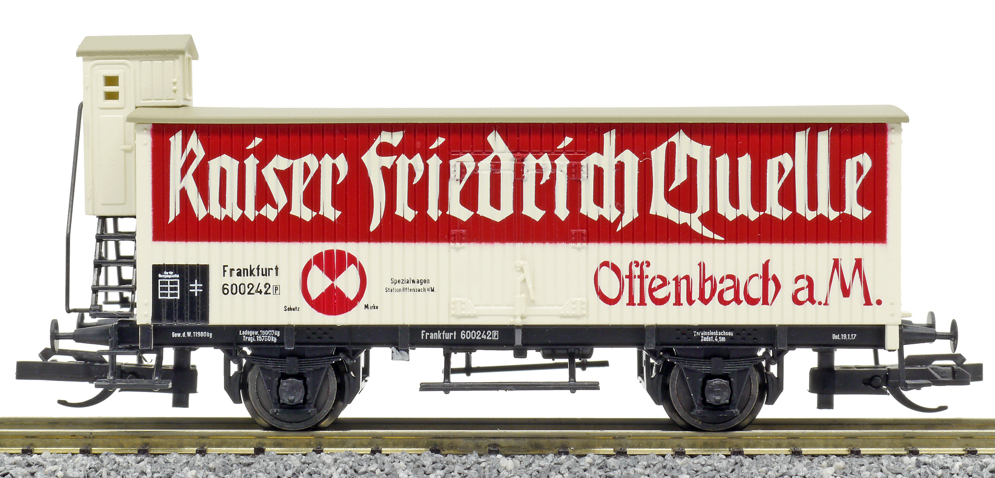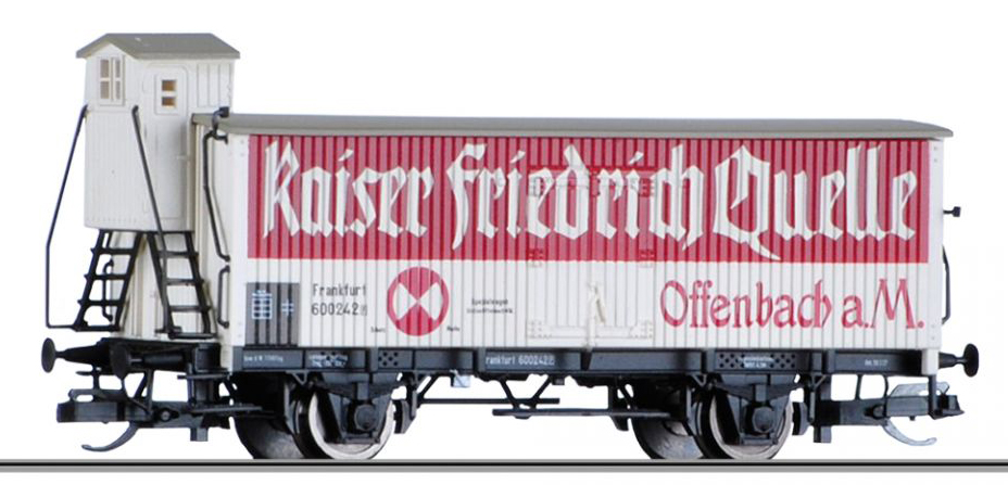 | nákladní izotermický vůz bílý s šedou střechou „Kaiser Friedrich Quelle“ |