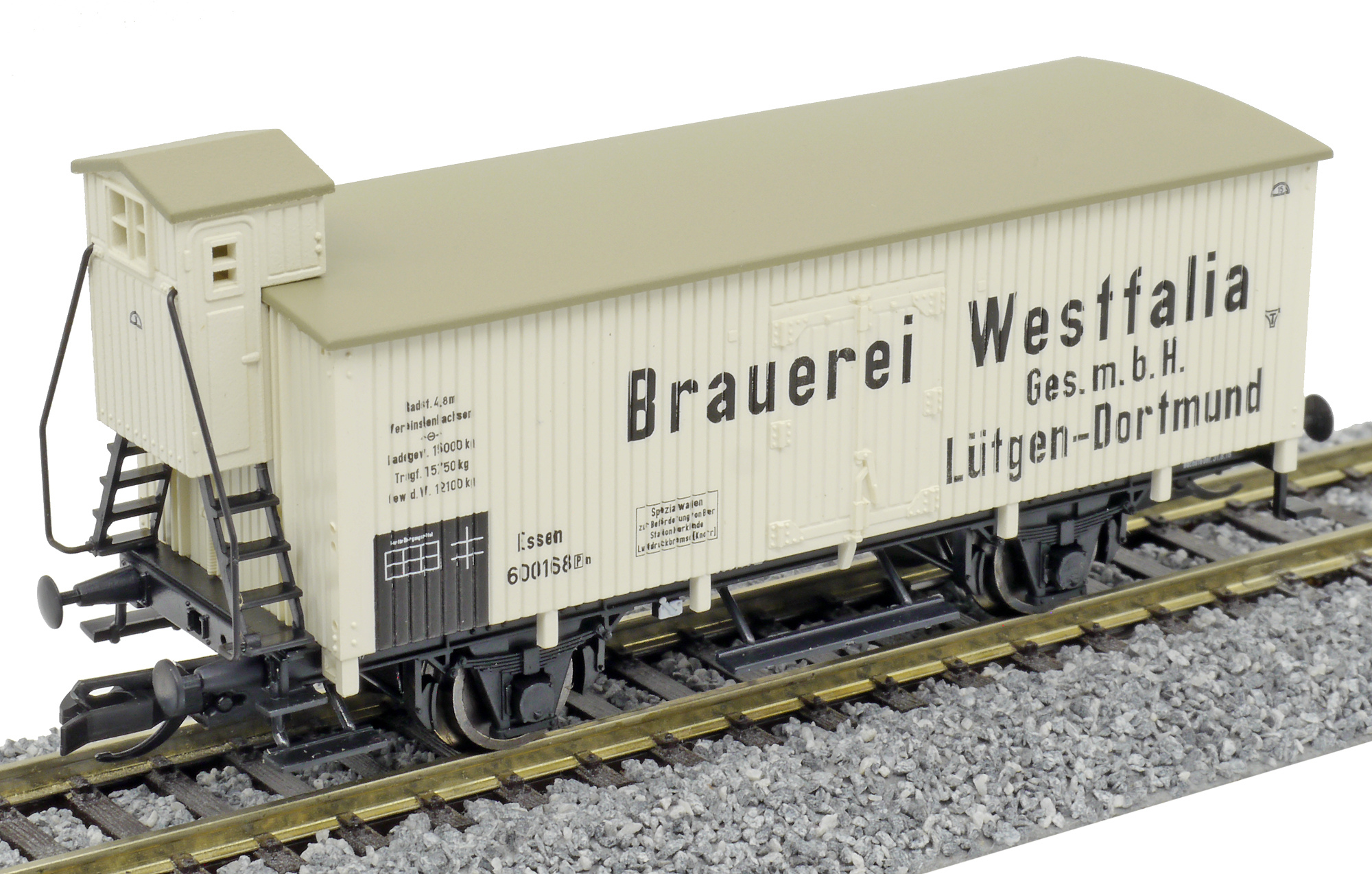 | nákladní izotermický vůz bílý s šedou střechou „Brauerei Westfalia“ |