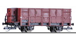 | otevřený nákladní vůz červenohnědý s brzdařskou budkou |