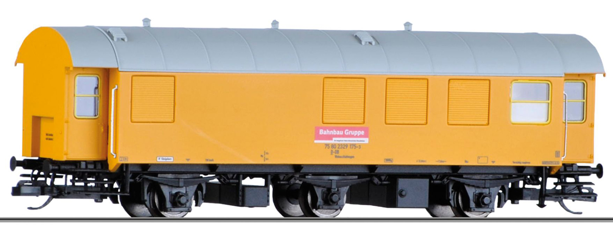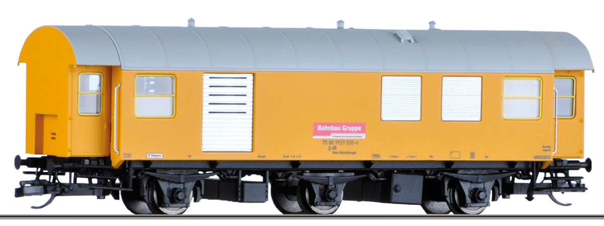 | obytný-dílenský vůz do pracovního vlaku žlutý s šedou střechou |