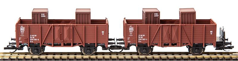 | set dvou nákladních otevřených vozů s kontejnery |