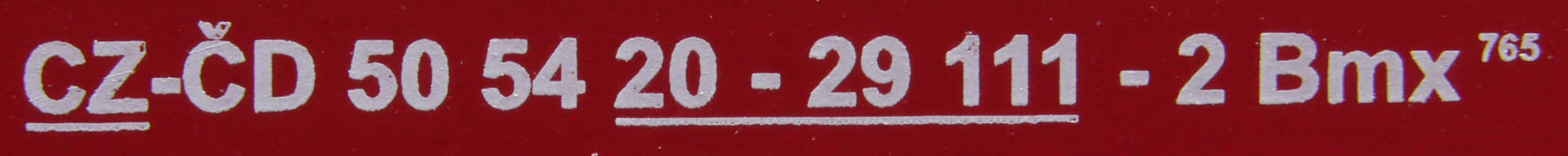 | • 50 54 20-29 111-2 | → | vůz druhé třídy 10 oddílů |
