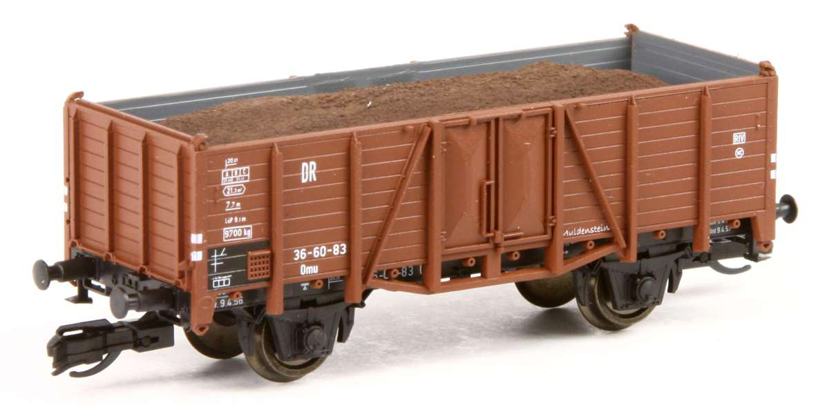 otevřený nákladní vůz červenohnědý s nákladem uhlí
