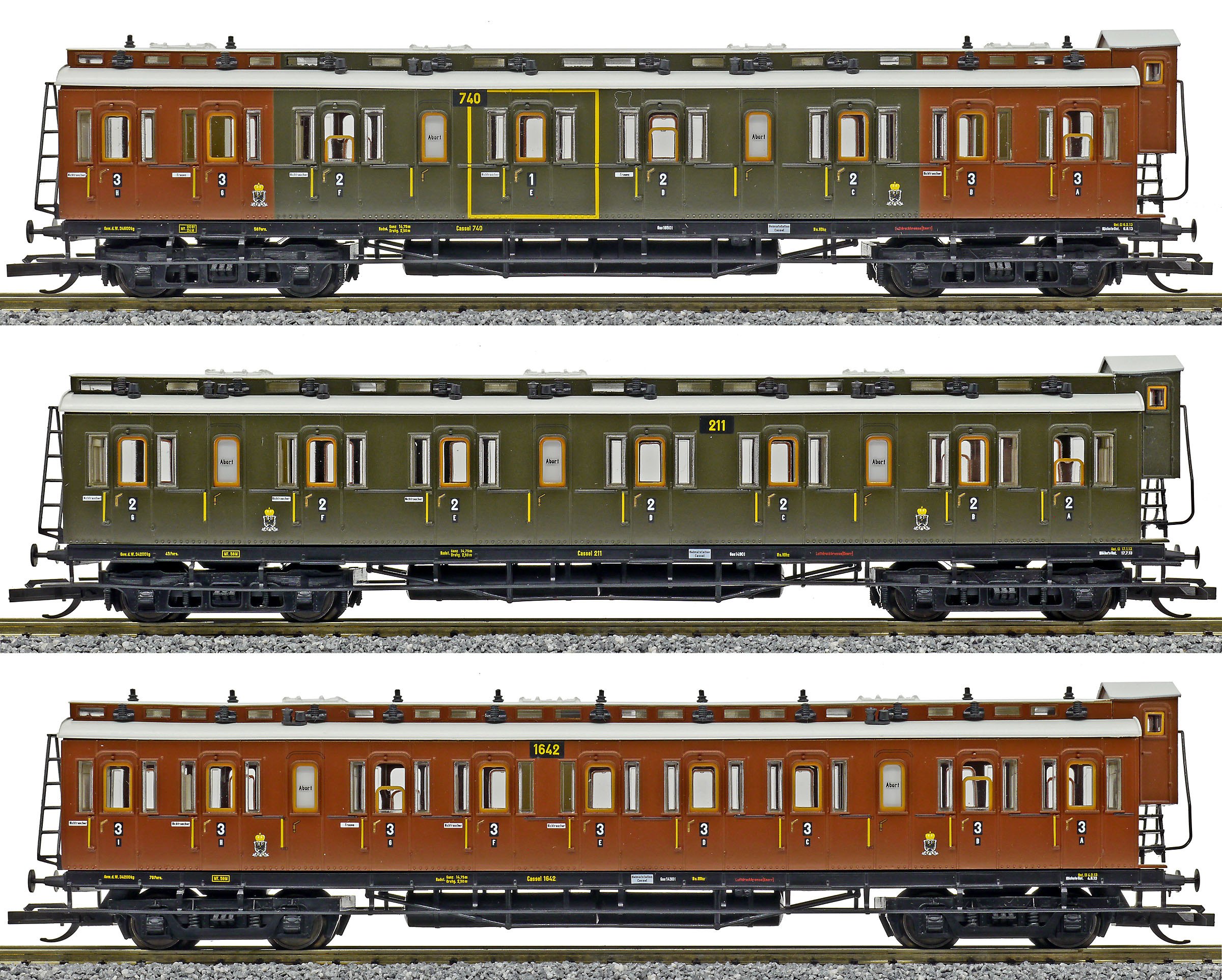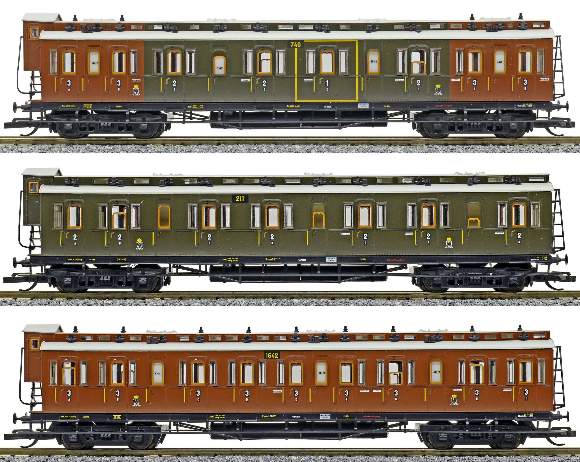 | oddílový osobní vůz tmavě zelený-červenohnědý 1./2./3. tř. |