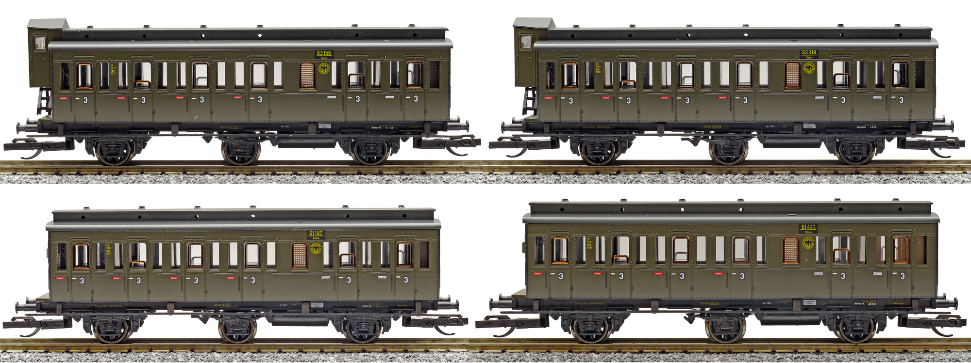 | oddílový osobní vůz tmavě zelený s černou střechou 3. tř. |