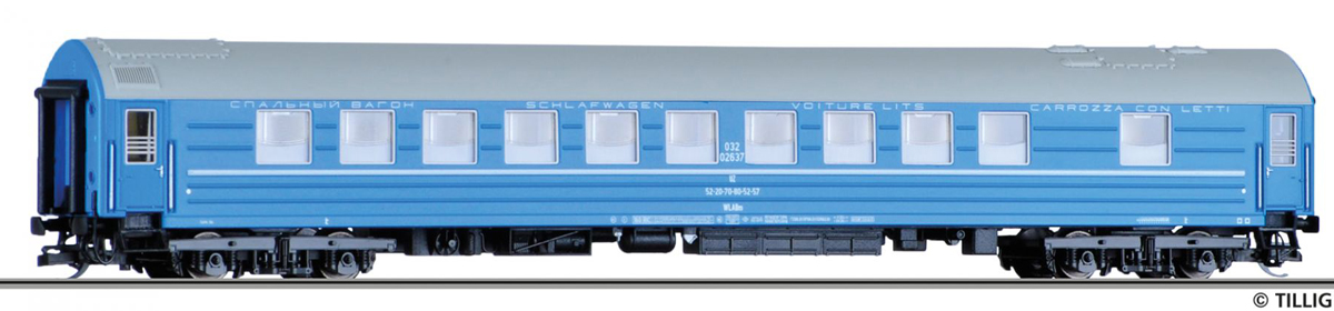 | lůžkový vůz modrý s šedou střechou |