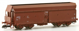 | samovýsypný vůz červenohnědý s uzavřenou brzdařskou plošinou se stříškou |