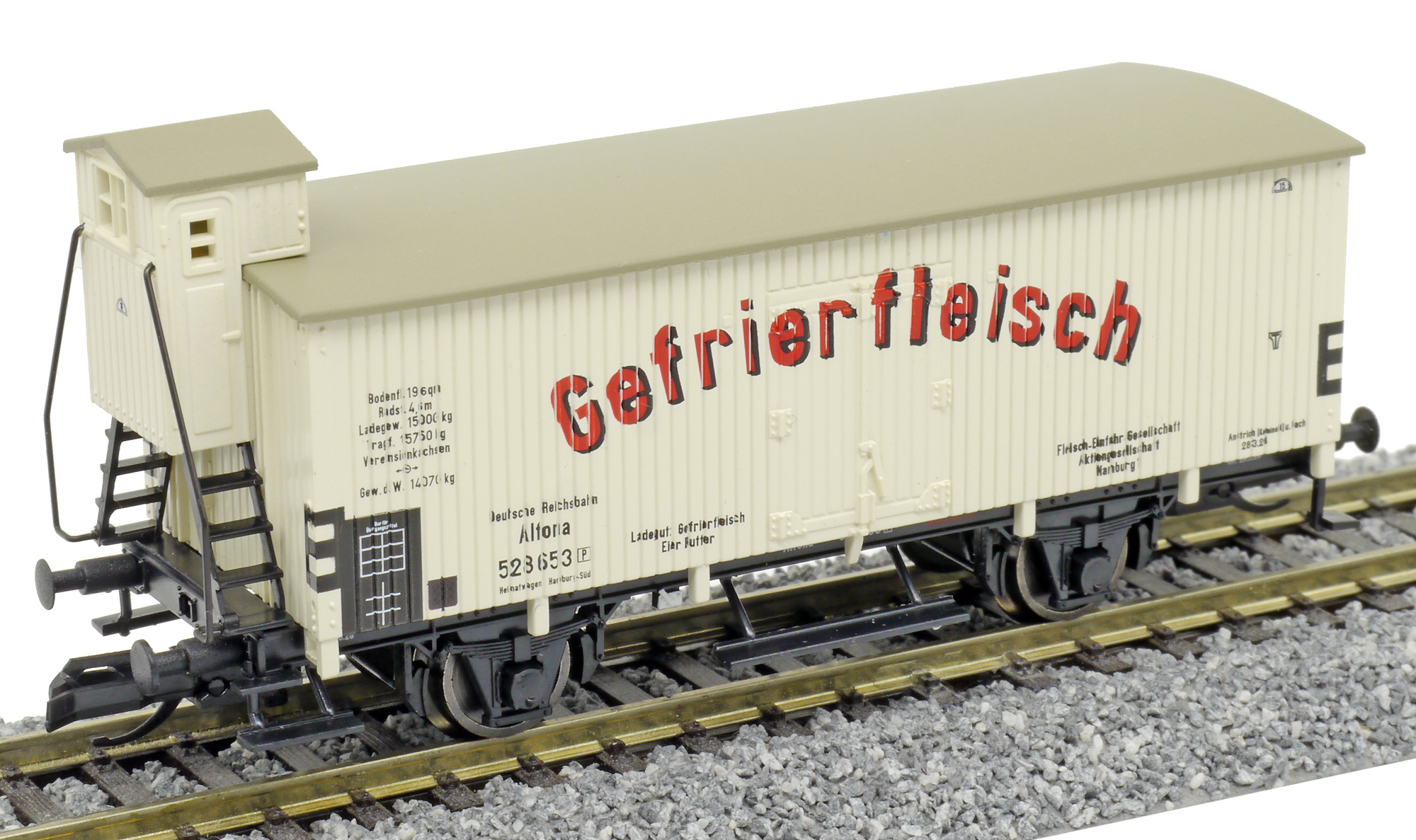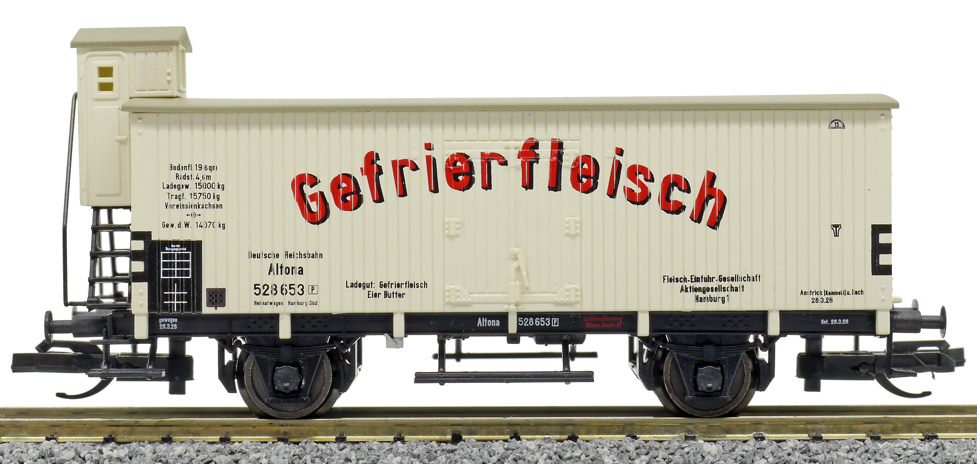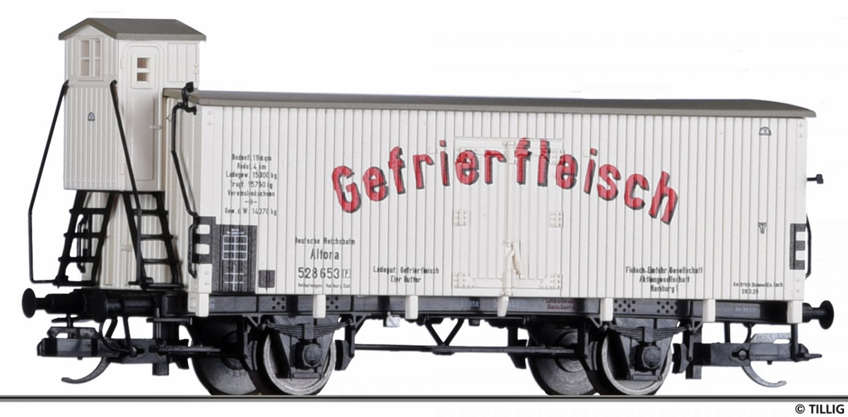 | chladící vůz bílý s šedou střechou „Fleisch-Einfuhr-Gesellschaft Hamburg“ |