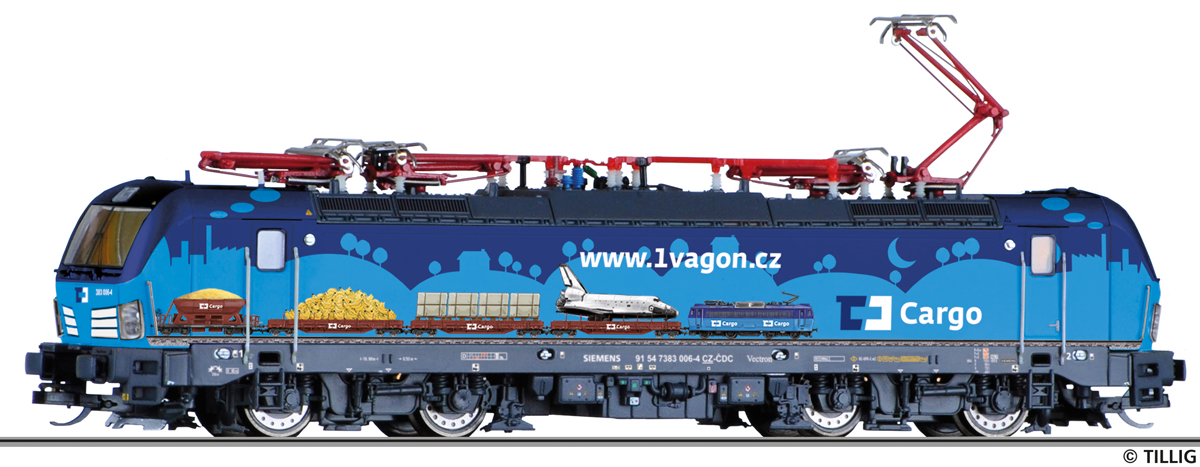 | elektrická lokomotiva s reklamním potiskem „ČD Cargo“ |