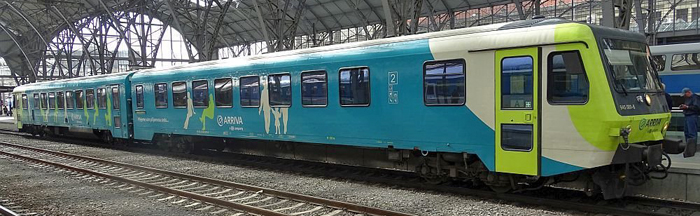 | motorová jednotka v barevném schematu „Arriva“ |