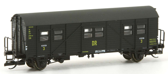 osobní vůz zelený s šedou střechou do pracovního vlaku