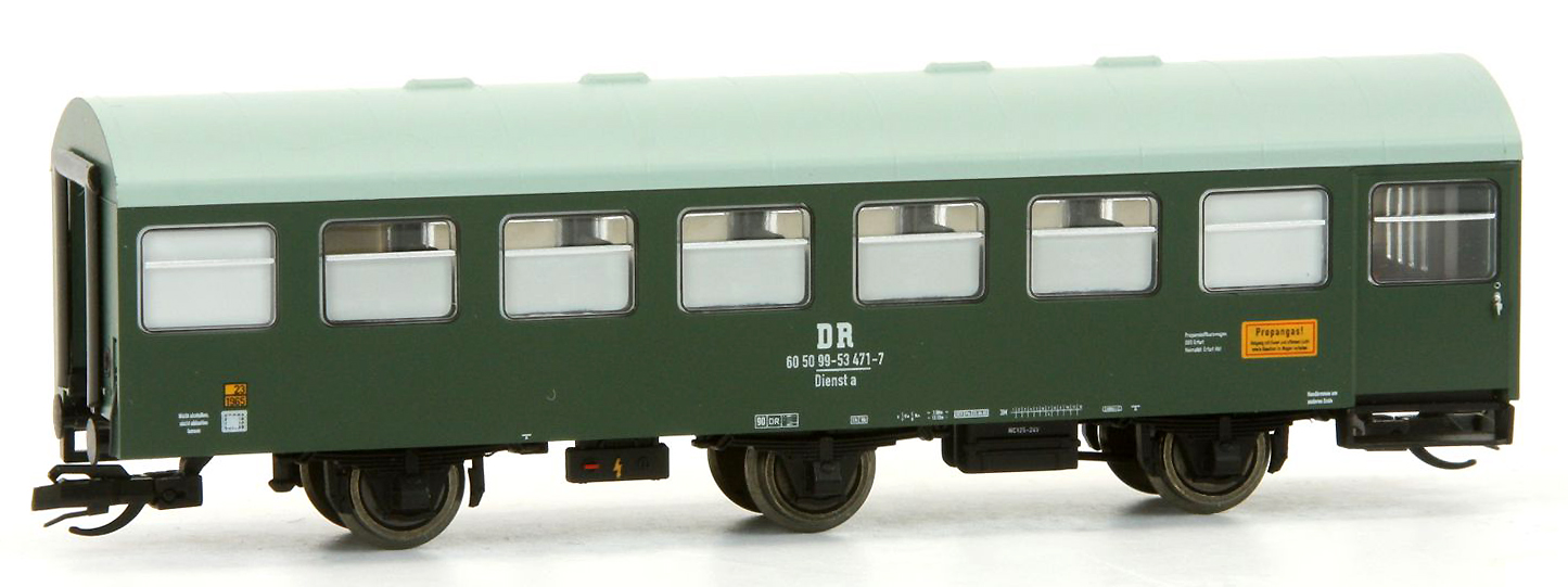 | služební vůz zelený s šedou střechou pro nákladní vlaky |
