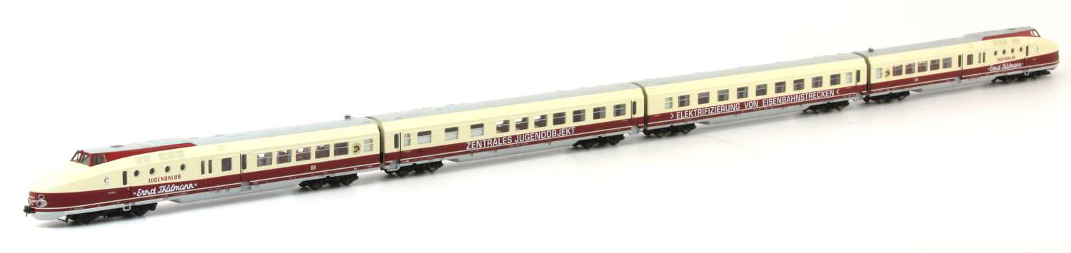 | čtyřdílná jednotka červená-slonová kost BR 175 „Jugendklubzug“ |