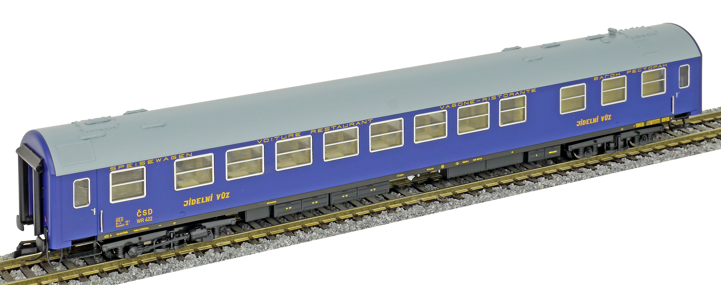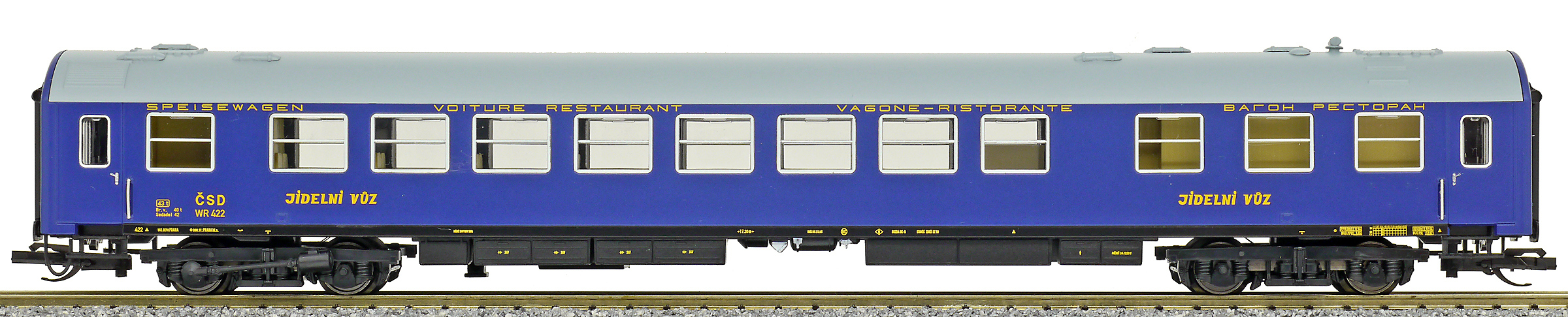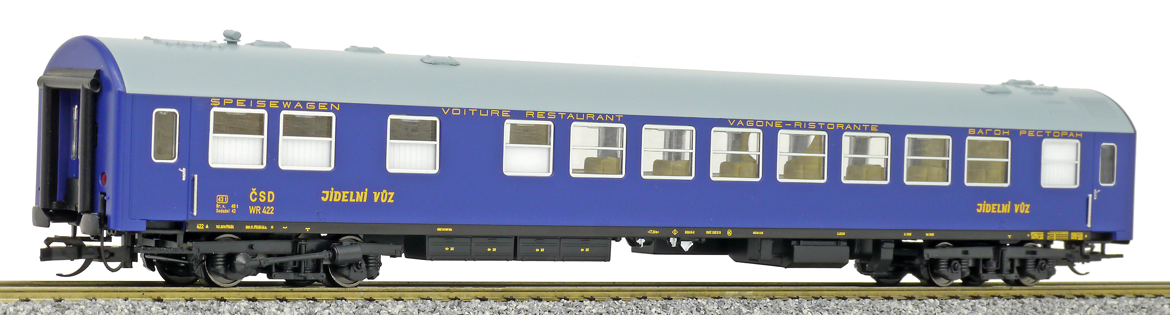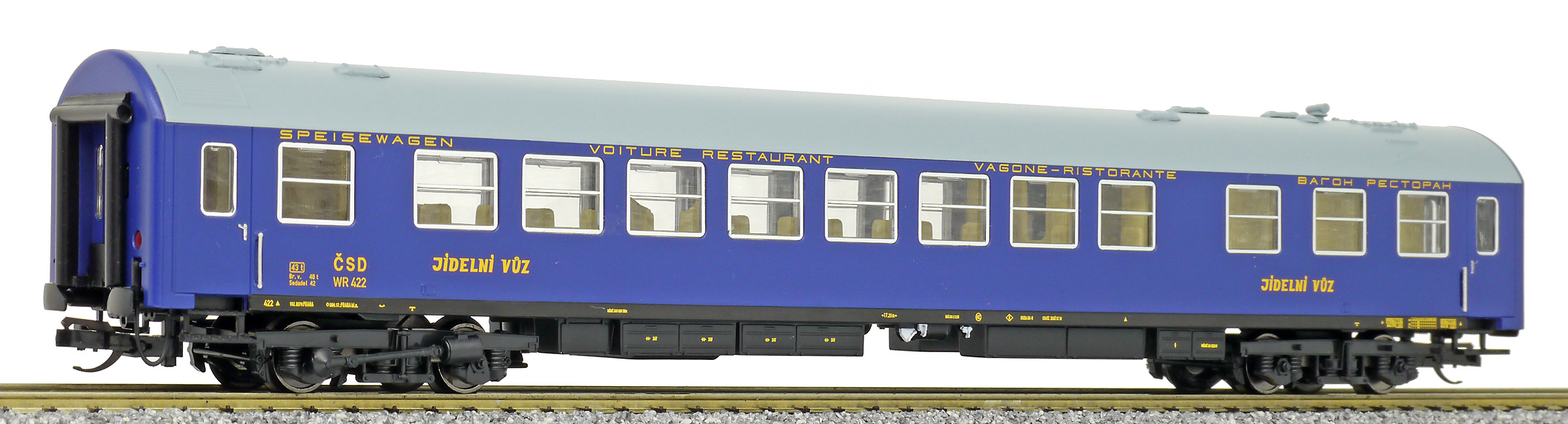 | jídelní vůz modrý s šedou střechou |