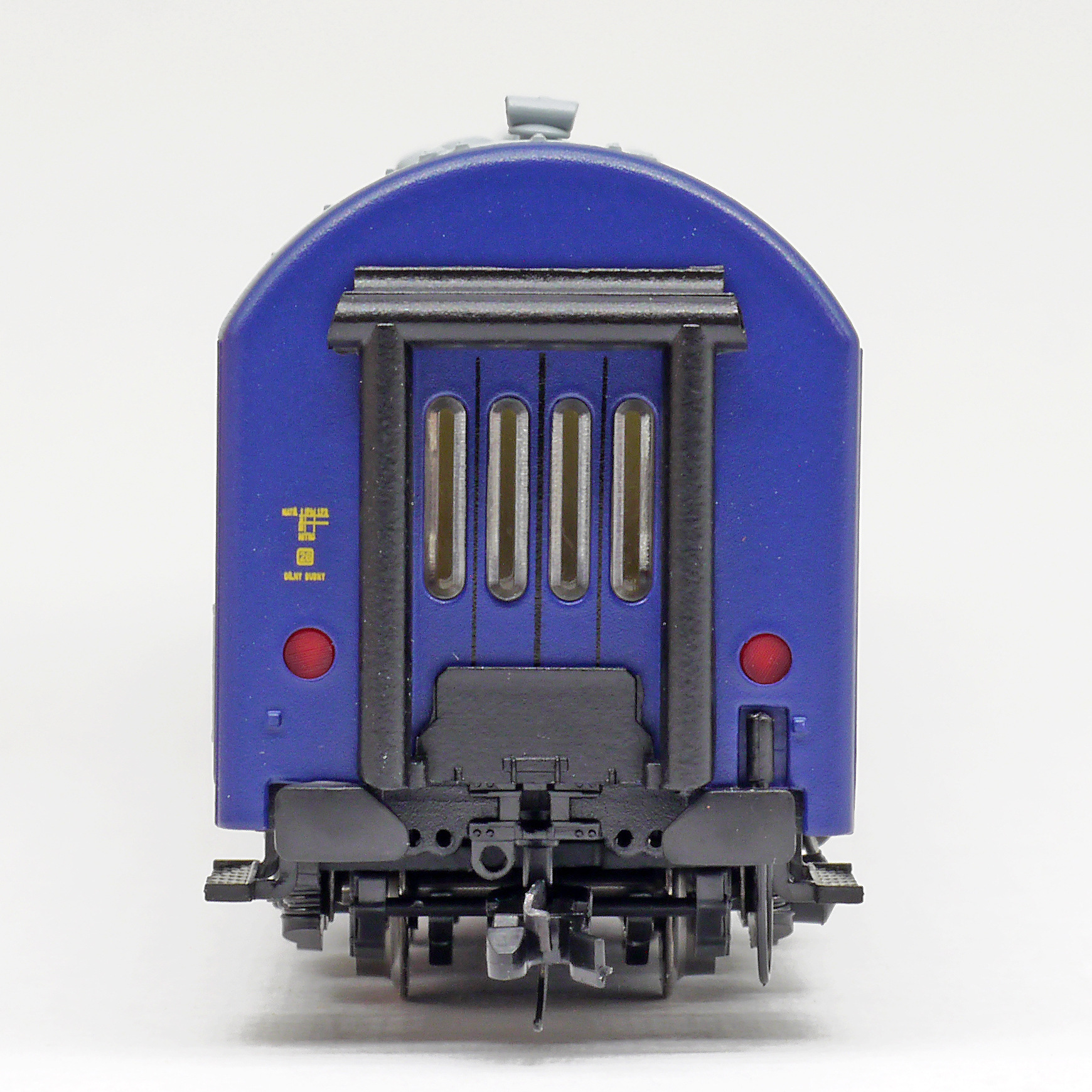 měřítko 1:120 - rozchod kolejí 12 mm vnitřní interiér vozu je možná instalace osvětlení interiéru kinematika krátkého spřáhla (KKK) podle normy NEM 358 mezinárodní doprava 204 mm - celková délka modelu přes nárazníky 4 - celkový počet náprav nebo rozložení náprav 200 g - hmotnost brutto - model včetně prodejního obalu 66 g - hmotnost netto - pouze model