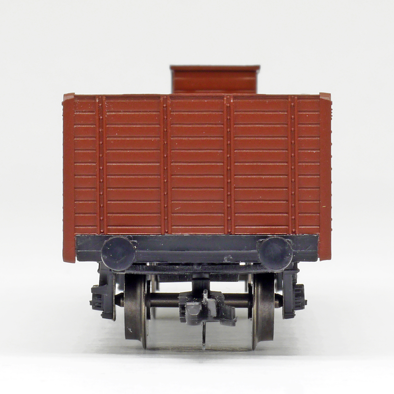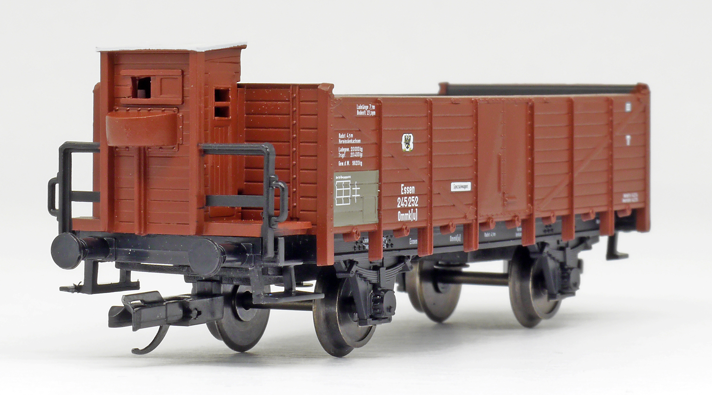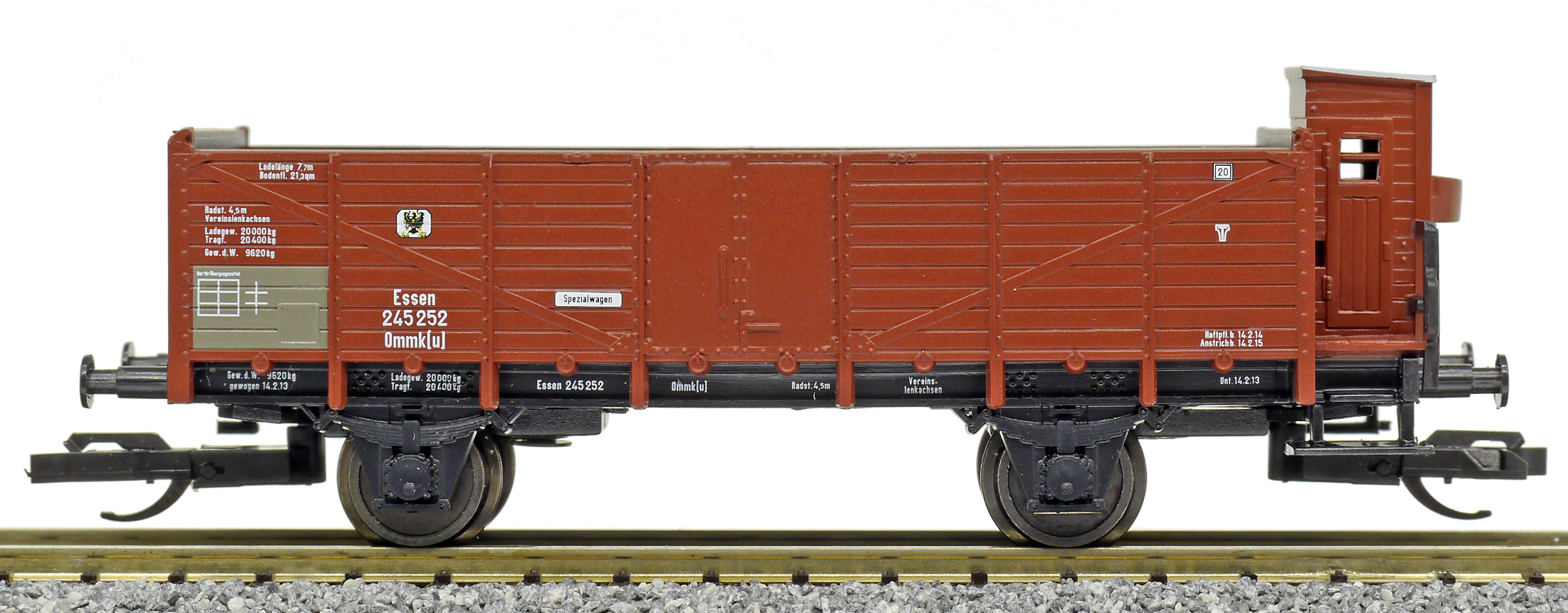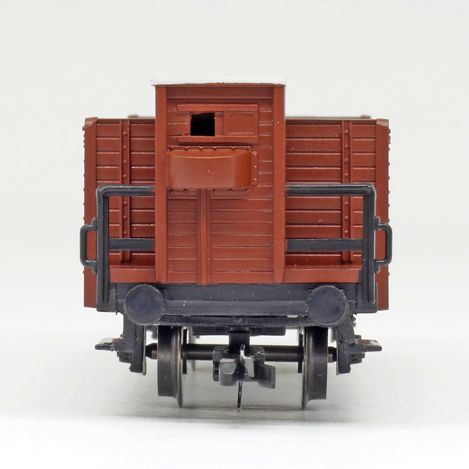 | otevřený nákladní vůz červenohnědý s brzdařskou budkou |