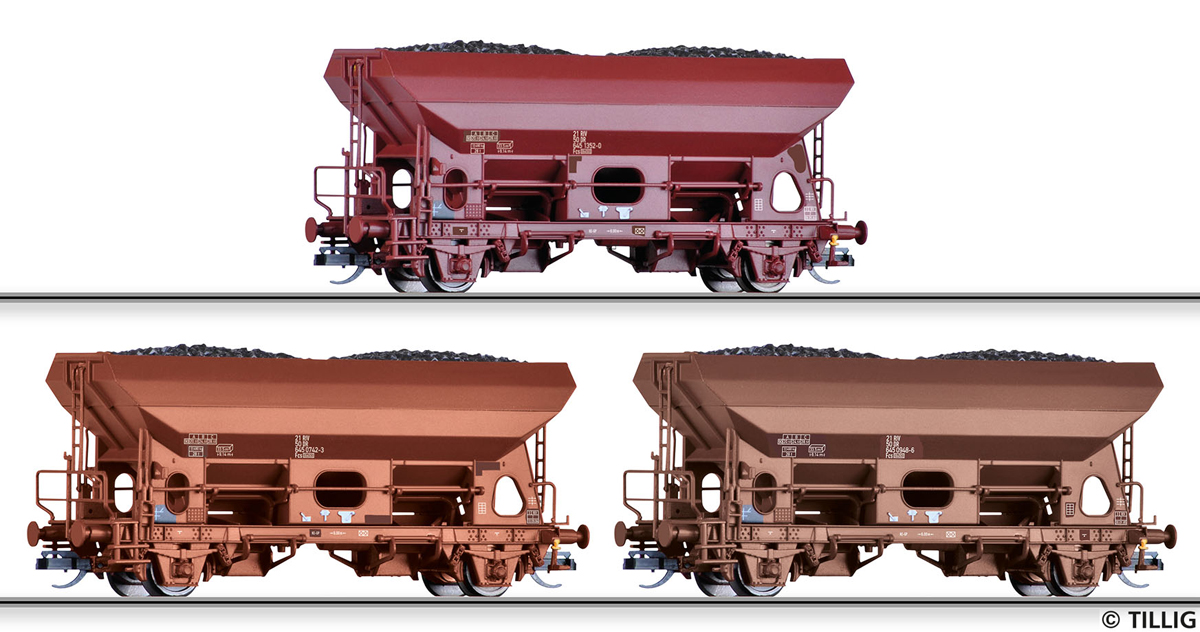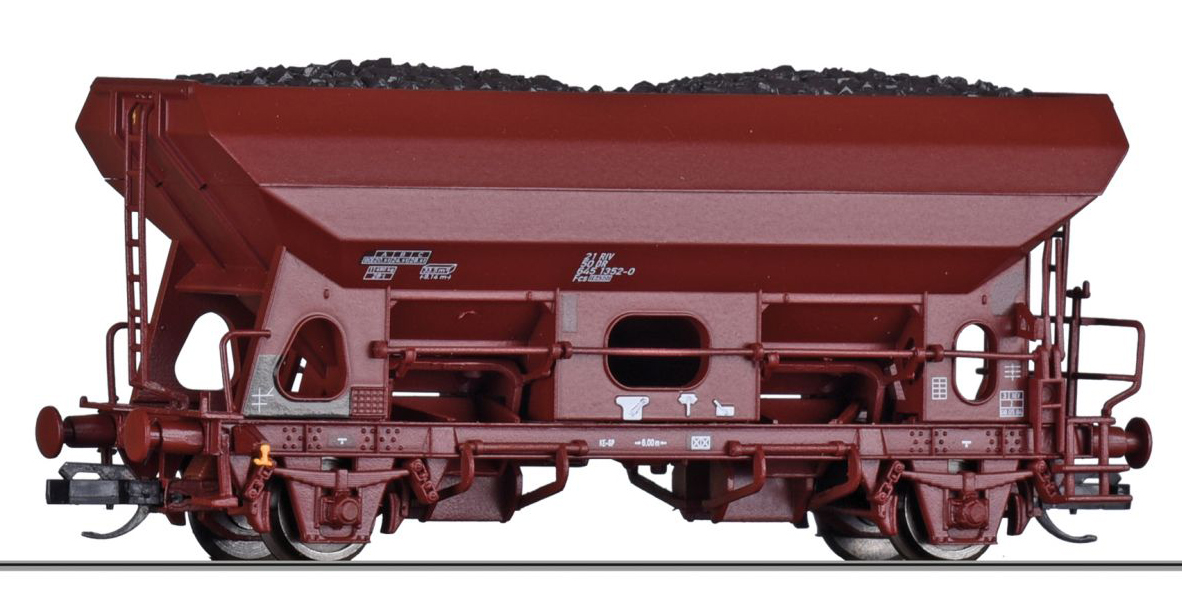 | samovýsypný vůz tmavě hnědý s nákladem uhlí |