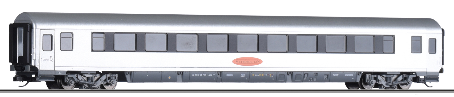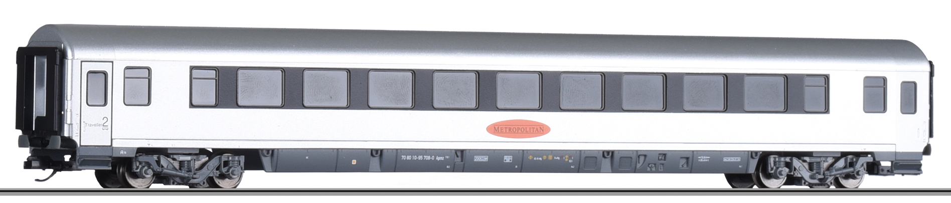 | rychlíkových vůz stříbrný s logem „Metropolitan“ |