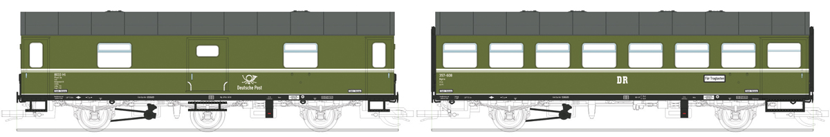 | set dvou rekonstrovaných vozů, 1x poštovní, 1x osobní |