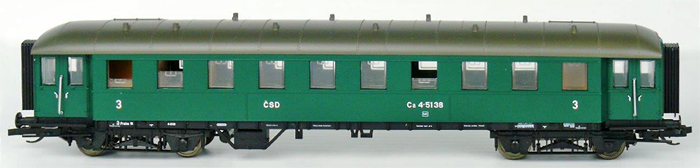 | osobní vůz zelený s šedou střechou 3. tř. |