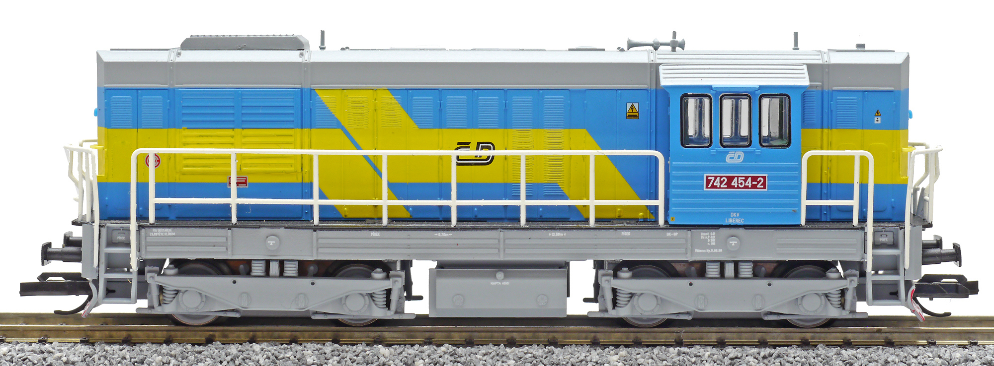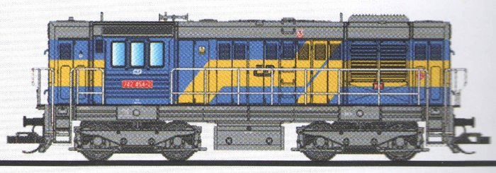 | dieselová lokomotiva modrá-žlutá, šedá střecha, rám a pojezd |