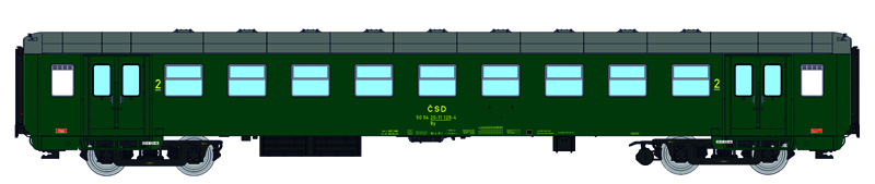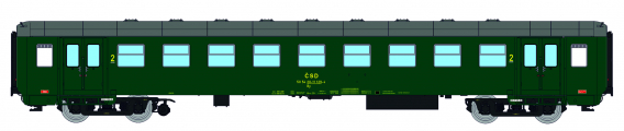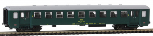 | osobní vůz zelený s šedou střechou 2. tř., depo Bratislava |