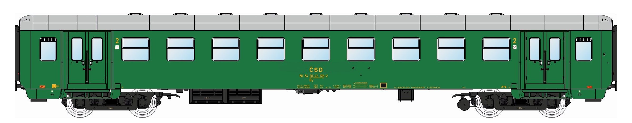| • 50 54 20-22 176-2 | → | vůz druhé třídy 10 oddílů |